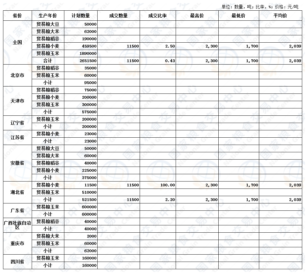 湖北粮网: 交易结果